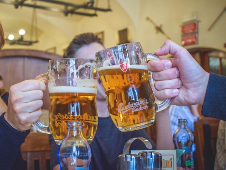 Walking to Lunch. When we first arrived in Prague, we met with our AirBnB host, who had recommended a restaurant just down the street and on our way to Old Town Square. Pay attention while you walk, otherwise you'll miss the little things that make this City so unique. The photo below is the embodiment of the streets of Prague: adorable corner store/building, narrow cobbled streets, and one-handed hanging man statute. Lunch consisted of traditional Czech food including one son's favorite Smažený sýr (fried cheese). If you love beer, you will love Prague and the prices. These steins were just $0.70 each during our visit.