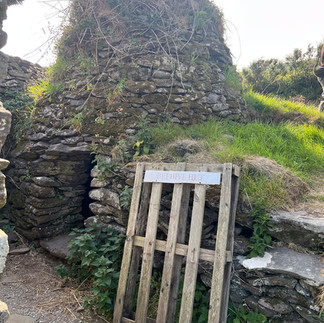 Beehives. A little bonus piece of the sheep dog spot was a tour of some Beehives Huts located on the property. These ancient Celtic structures housed the original inhabitants in the area. The exact age are unknown but they are believed to date back to the 5th-8th centuries.
