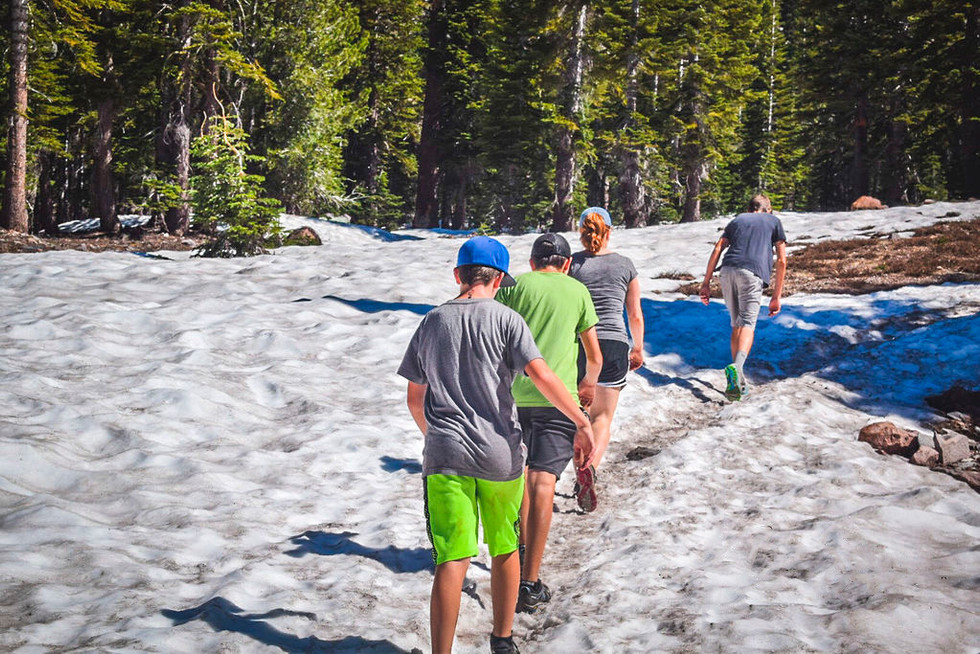 During heavy snow years, the trail will still be covered in snow when you near Horse Camp.