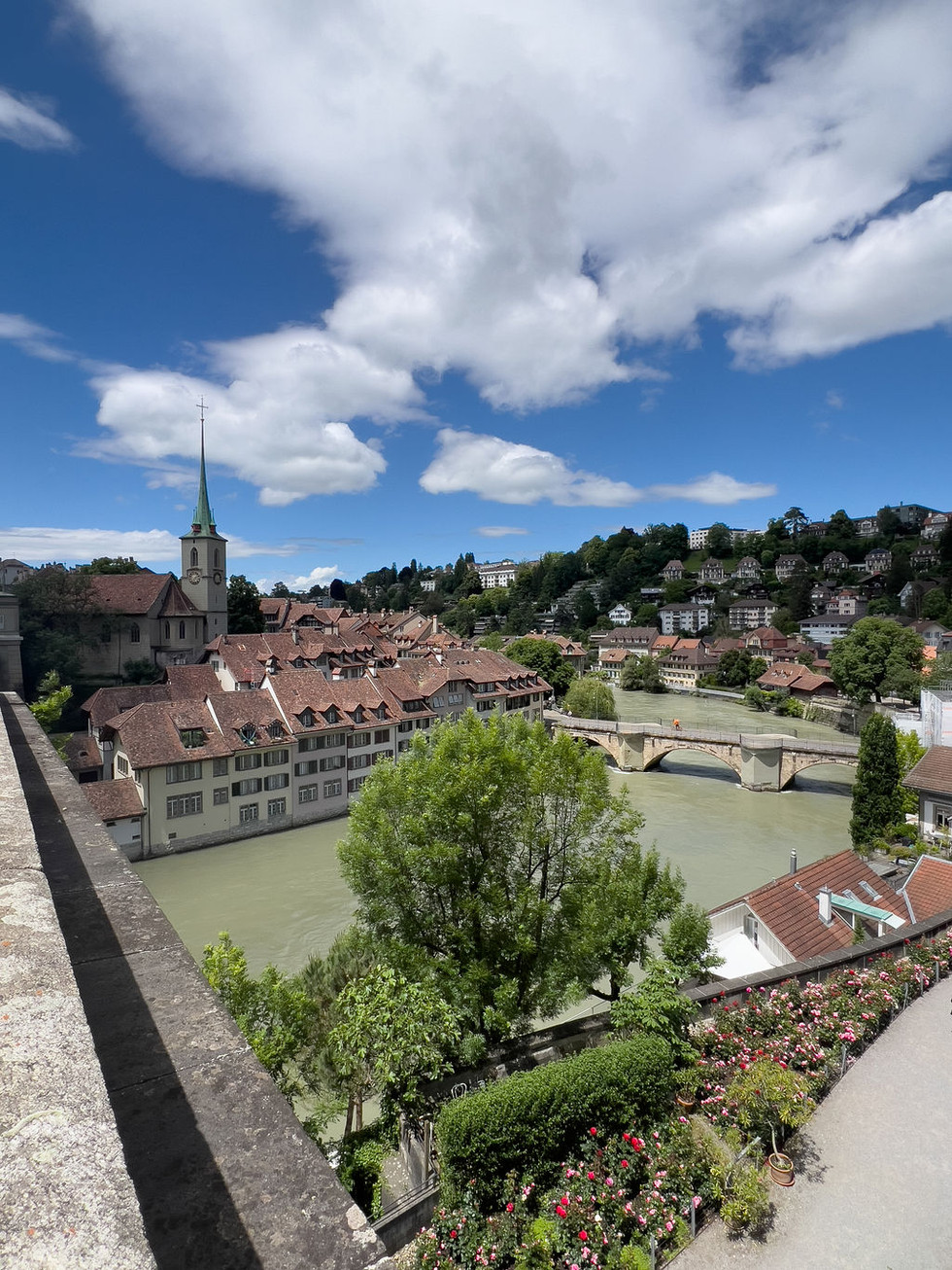 Upon arrival in Bern, we parked and took the Nydeggbrücke across the Aare River to go see BärenPark (Bern Bear Park). The walk there and back is scenic. At the Bear Park, there were crowds and we could only catch quick glimpses of the fuzzy brown bears so we didn't stay long before heading instead towards old town.